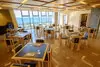 宮古ブルーをイメージした青と白のスタイリッシュなレストランで沖縄の食材などを生かした本格的な洋食をご提供いたします。